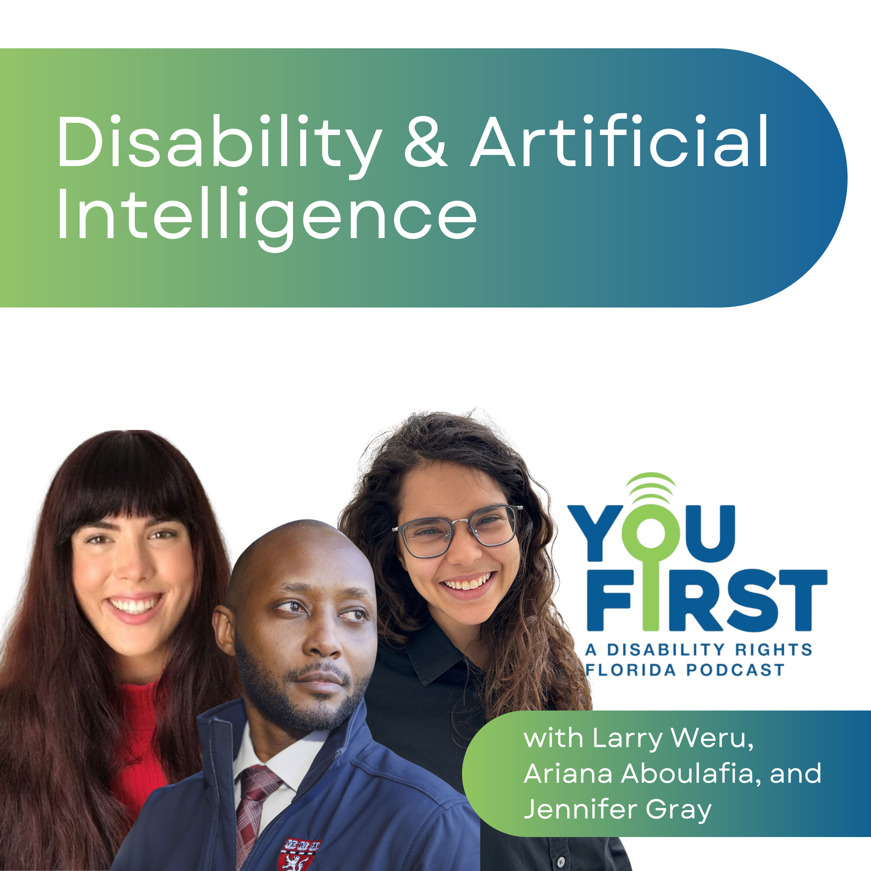 You're listening to You First: The Disability Rights Florida Podcast. In this episode, we talk with Larry Weru, Ariana Aboulafia and Jennifer Gray about Disability and AI.