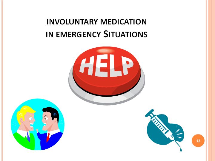 PS: So they can't force me to take medication without taking me to court first? A: In situations where your behavior is determined to be an immediate danger to yourself or others, involuntary medications can be provided to you with a doctor's order.